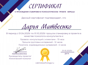 В этом разделе вы можете найти психолога, который проходит в нашем проекте стажировку.