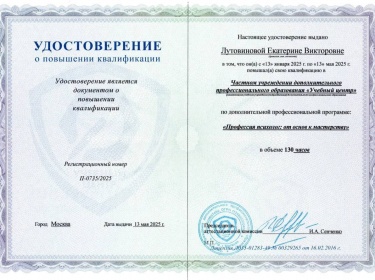 Закончила Московский Институт Психоанализа по специальности клинический психолог.